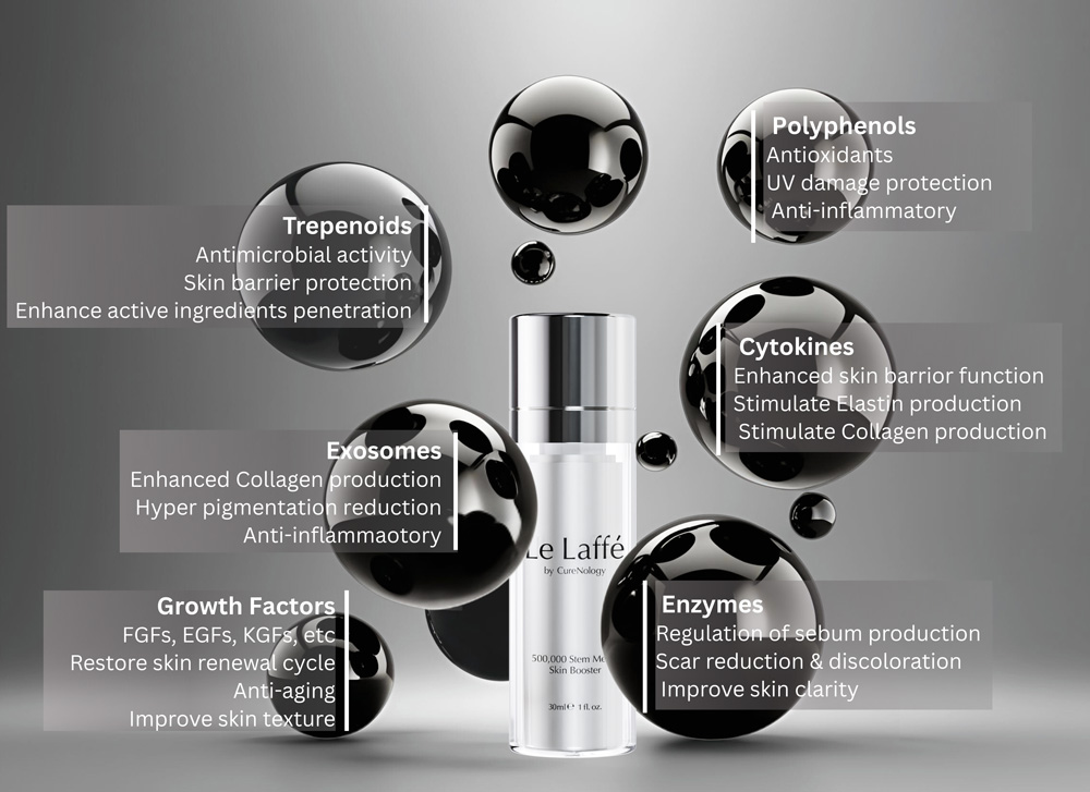Lavorando in sinergia, nutrono profondamente la pelle, rivelando un viso che risplende di salute, giovinezza e vitalità. Il cuore del “500.000 Stem Media Skin Booster” è la sua capacità di attivare il profondo meccanismo di comunicazione e del ringiovanimento cellulare, grazie ai componenti meticolosamente selezionati del secretoma delle cellule staminali:
